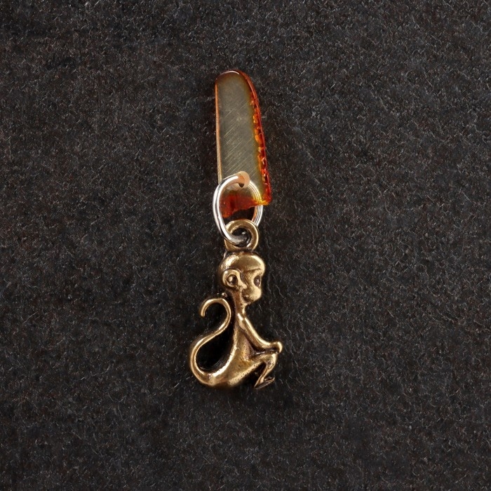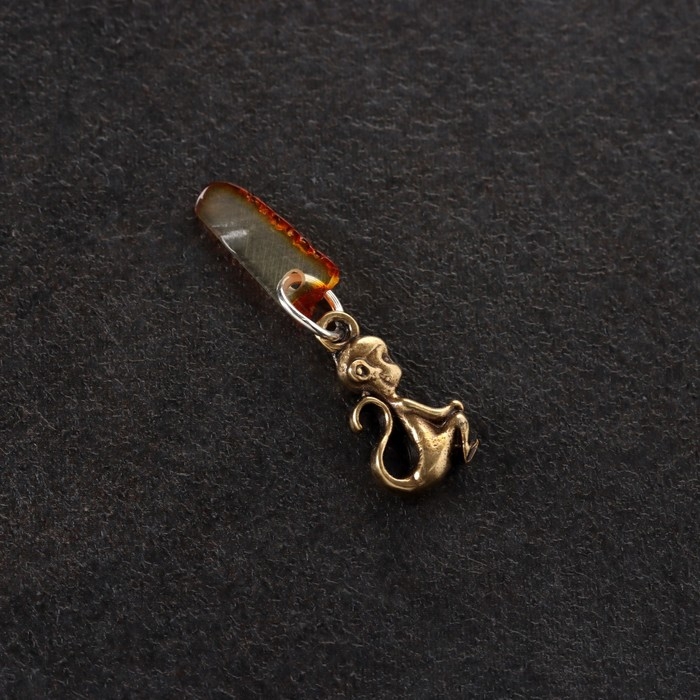 Брелок талисман "Обезьянка", латунь, янтарь