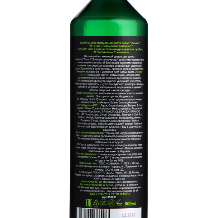 Шампунь для стимуляции роста волос "Сила 7 Элементов природы" Шпинат, 500 мл