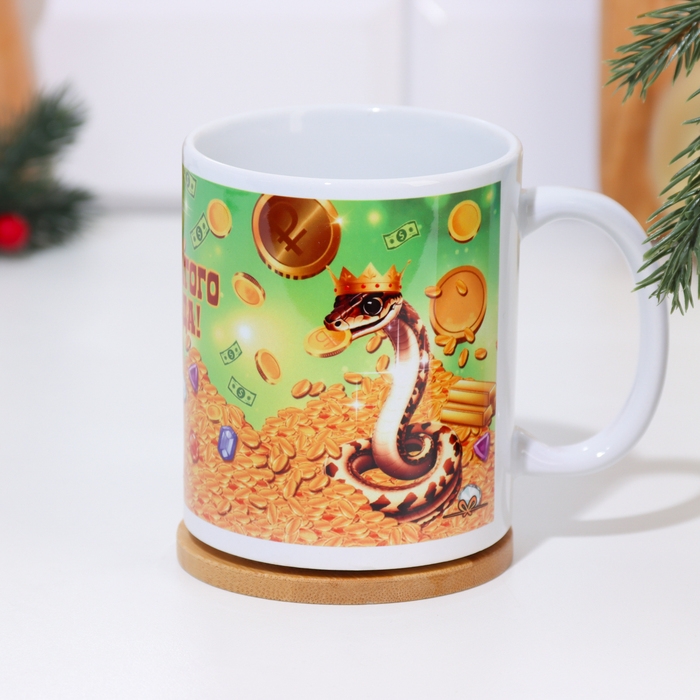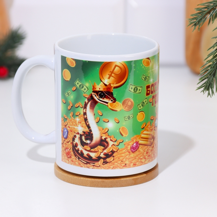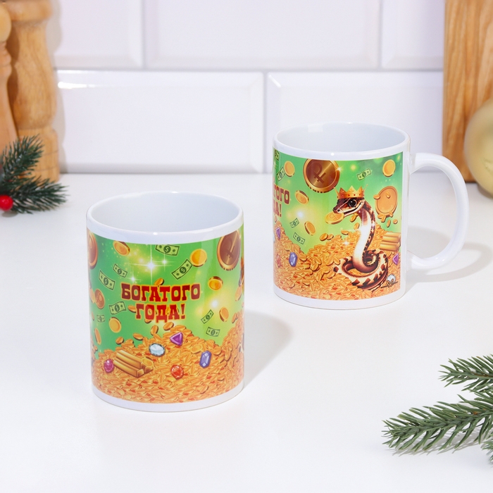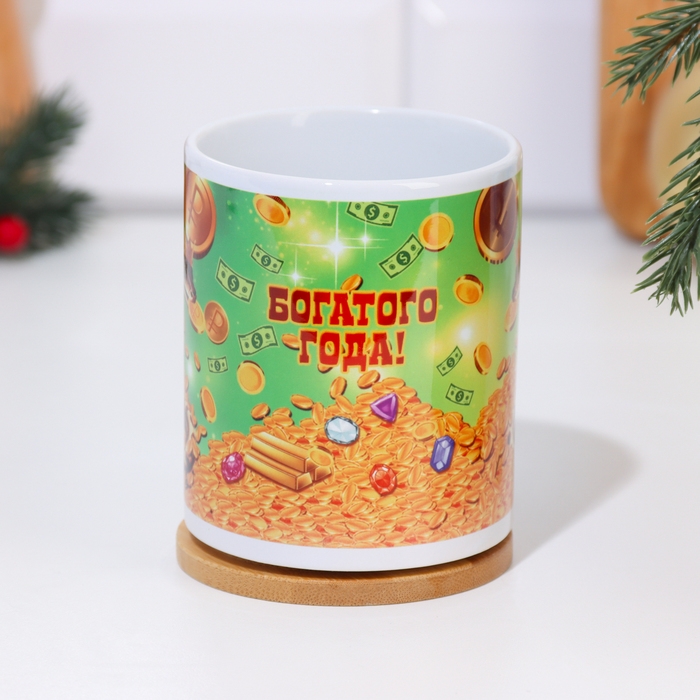 Кружка новогодняя, сублимация "Богатого года!" символ года, монеты, 320 мл