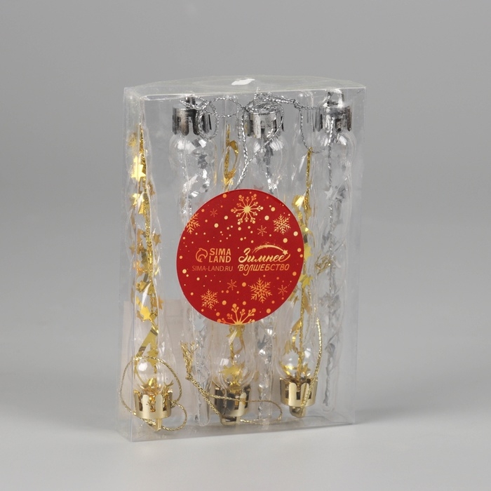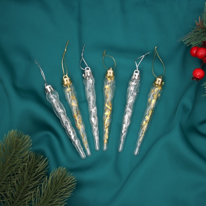 Украшение ёлочное "Сосулька Космин" (набор 6 шт) 11,5х1 см, прозрачный золото серебро