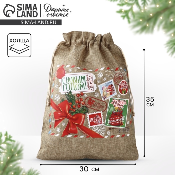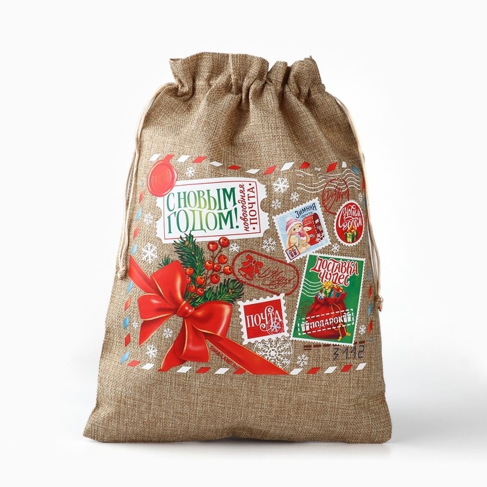 Мешок подарочный с термонаклейкой «Новогодняя почта», 30 х 40 см , Новый год