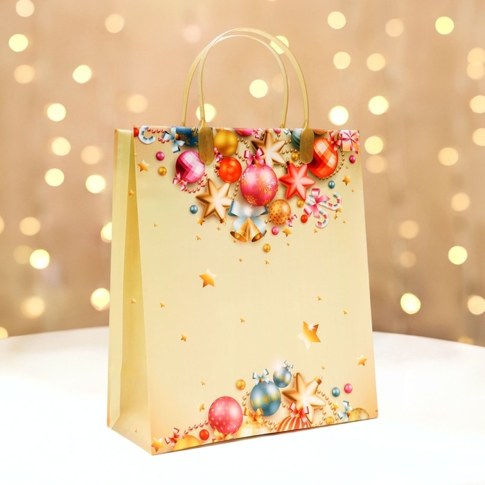 Новогодний пакет отличается ярким и праздничным дизайном. Он украшен тематическими узорами, рисунками и надписями, которые создают настроение праздника и веселья. Такой пакет станет прекрасным дополнением к вашему подарку и подарит получателю радость и положительные эмоции.