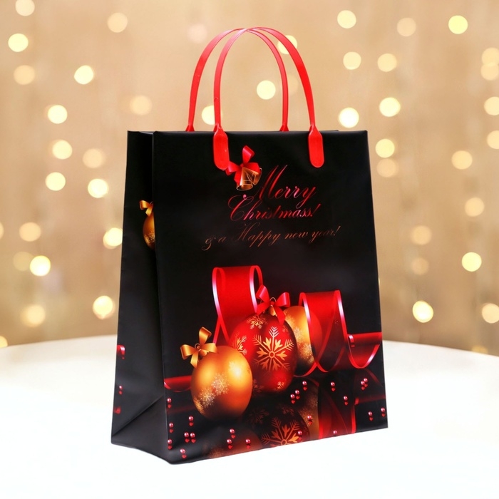 Новогодний пакет отличается ярким и праздничным дизайном. Он украшен тематическими узорами, рисунками и надписями, которые создают настроение праздника и веселья. Такой пакет станет прекрасным дополнением к вашему подарку и подарит получателю радость и положительные эмоции.