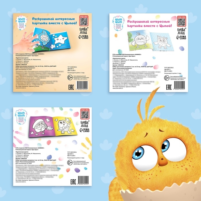 Набор пальчиковых раскрасок, 3 шт. по 12 стр., 19 × 19 см, ЦЫП-ЦЫП