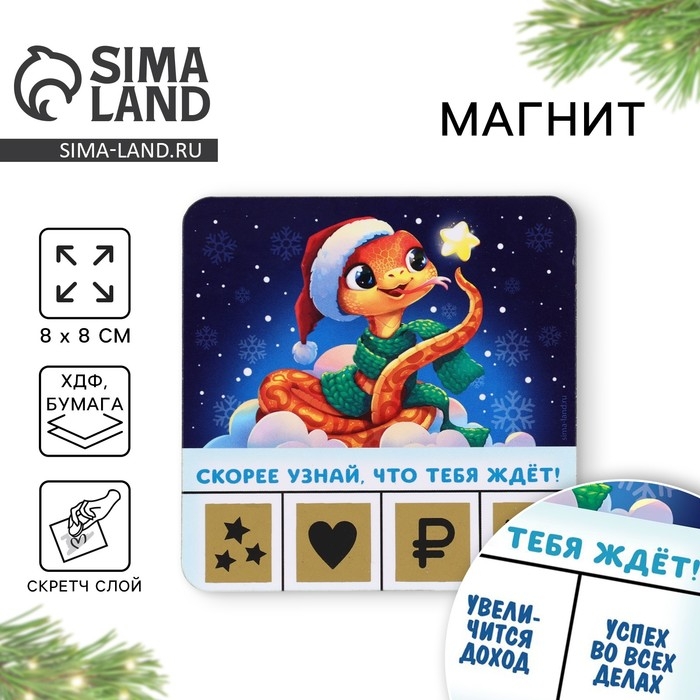 Магнит новогодний дерево со скретч-слоем «Новый год: Змейка», 8 х 8 см