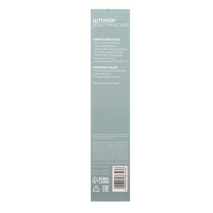 Штопор электричекий «Алкогольвицы»,мод. LSH-03, 4,7 х 23 см.