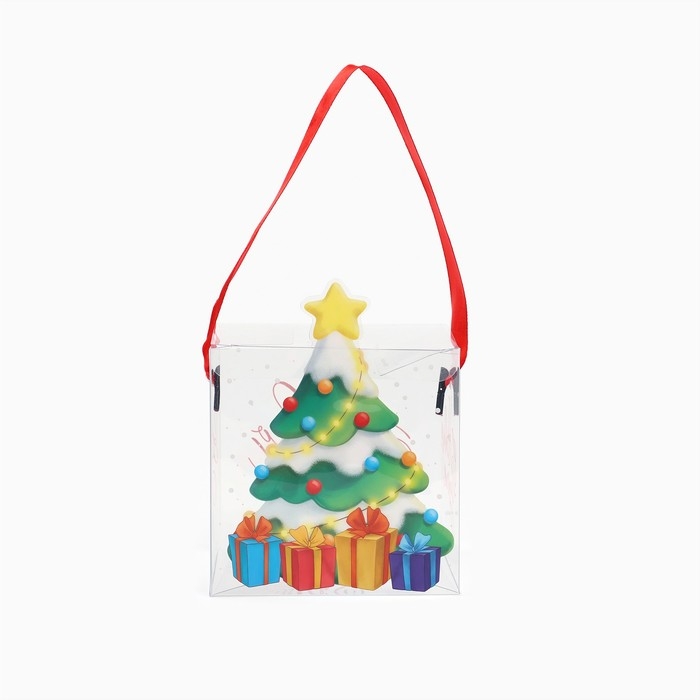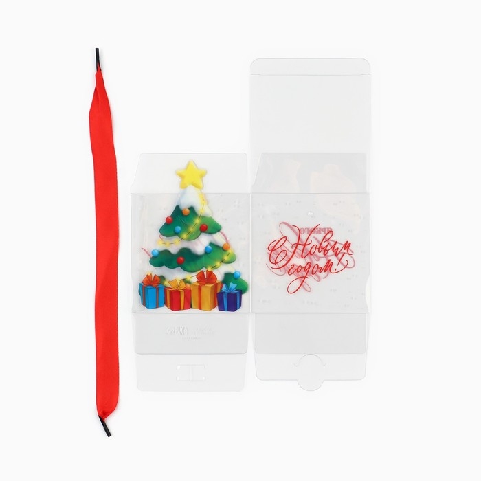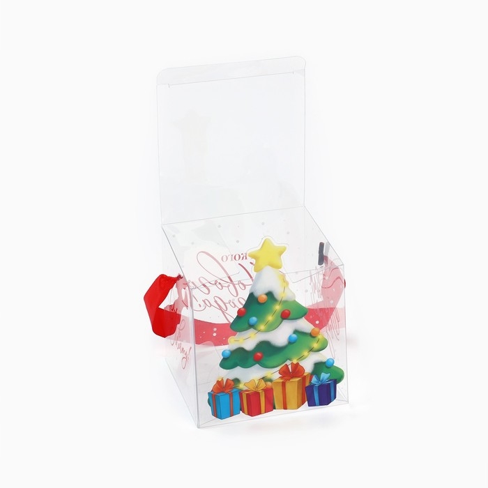 Коробка подарочная новогодняя складная ПВХ, «Ёлочка с подарками», 10 х 10 х 10 см, Новый год