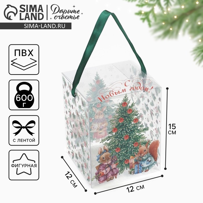 Коробка подарочная новогодняя складная ПВХ, «Уютный Новый год», 12 х 15 х 12 см, Новый год