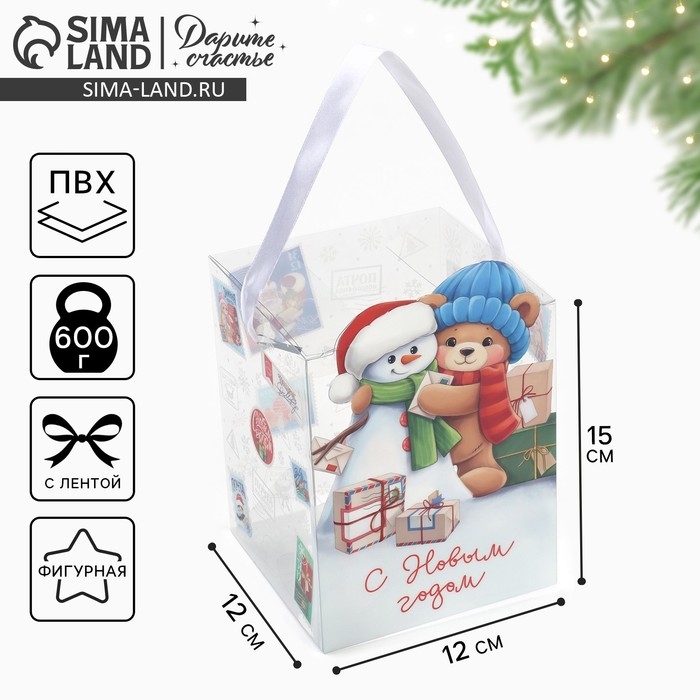Коробка подарочная новогодняя складная ПВХ, «Новогодняя почта», 12 х 15 х 12 см, Новый год