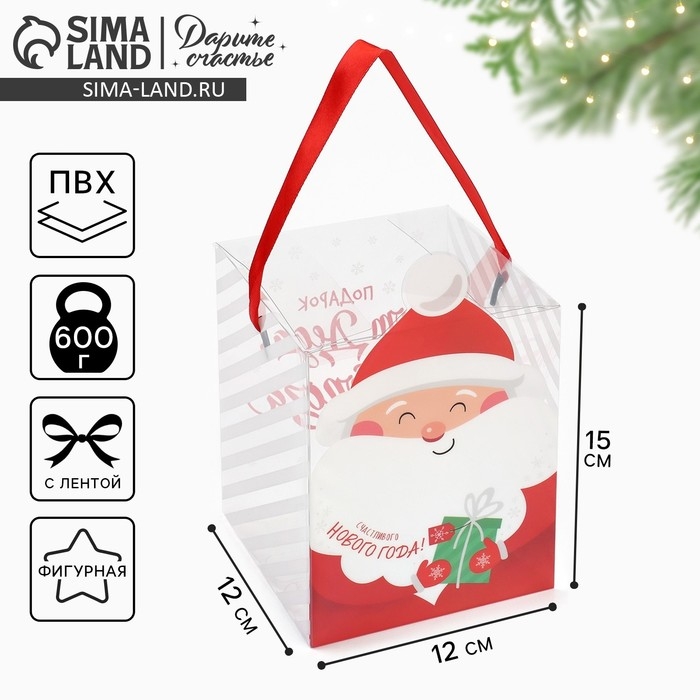 Коробка подарочная новогодняя складная ПВХ, «Подарок от Деда Мороза», 12 х 15 х 12 см, Новый год