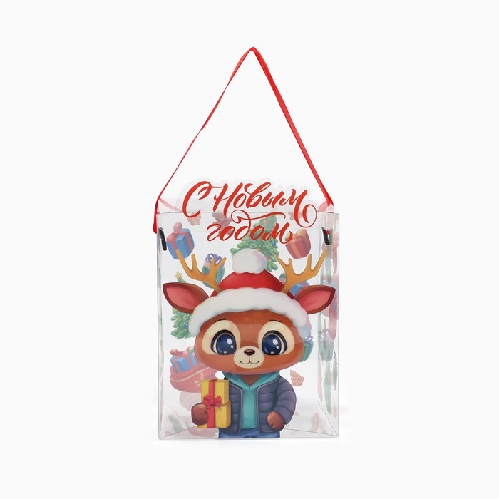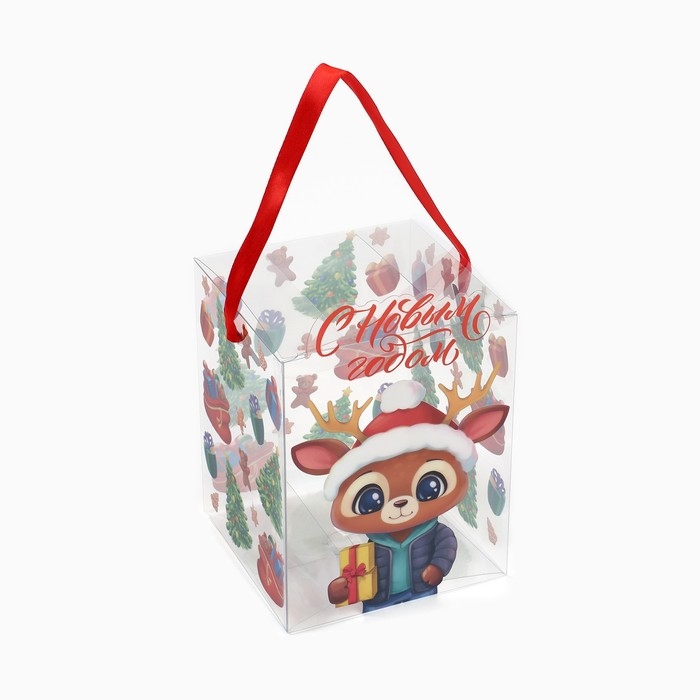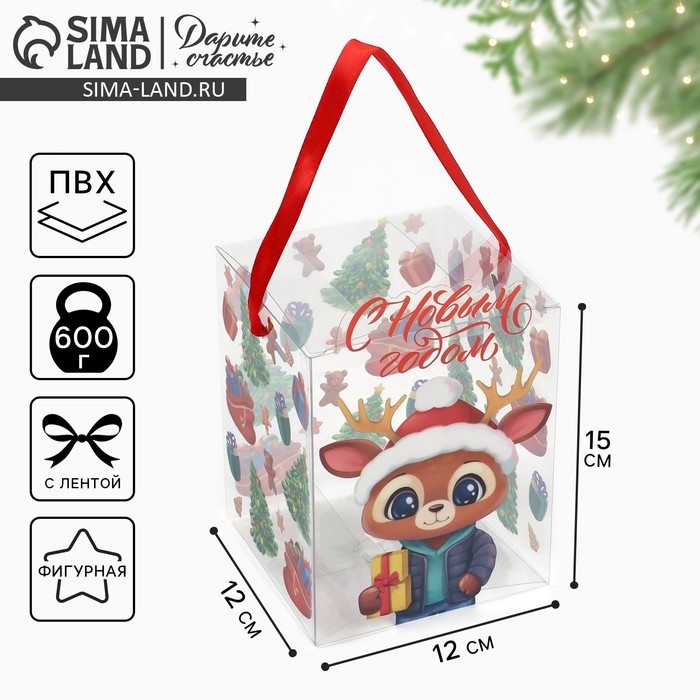 Коробка подарочная новогодняя складная ПВХ, «С Новым годом!», 12 х 15 х 12 см, Новый год