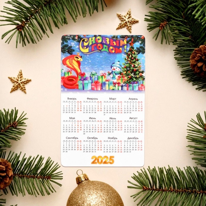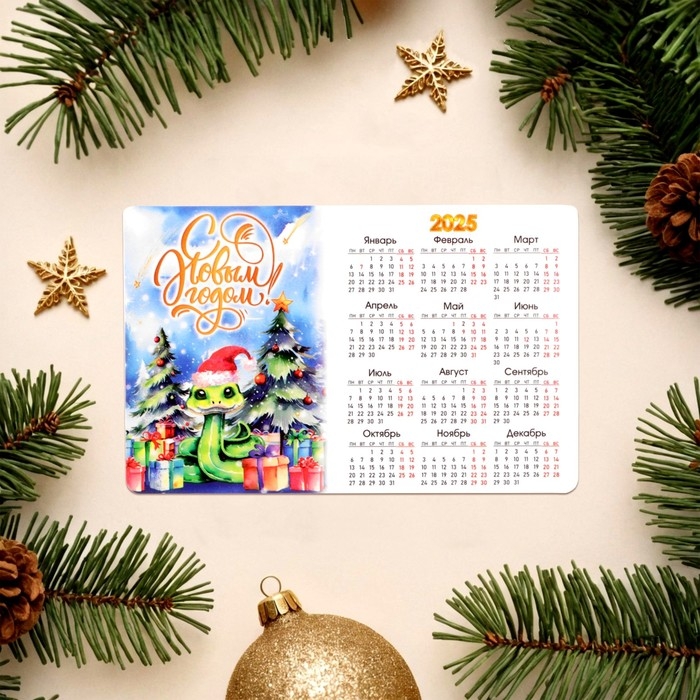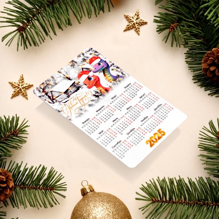 Набор новогодних, змея, магнитов-календарей "С Новым Годом!" символ года, 11 х 9 см