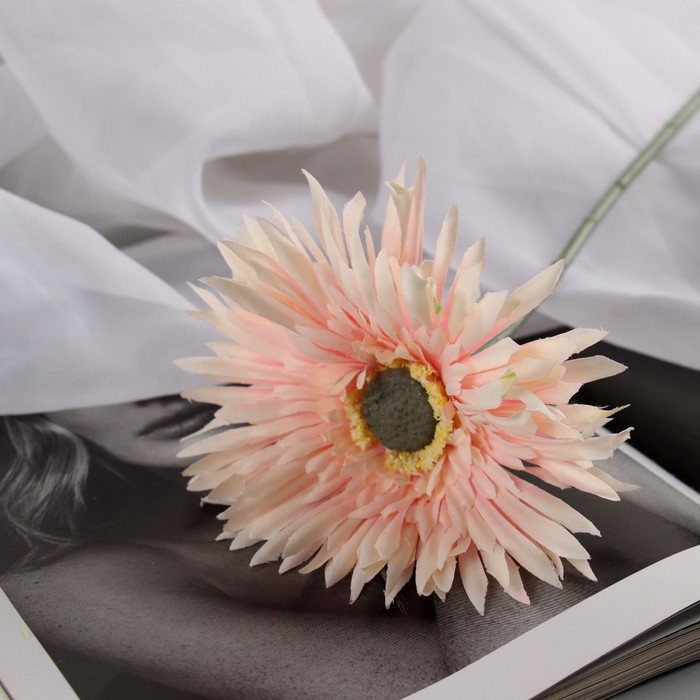 Цветы искусственные "Хризантема люкс" d-11 см, 40 см, бело-розовый