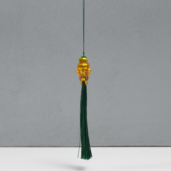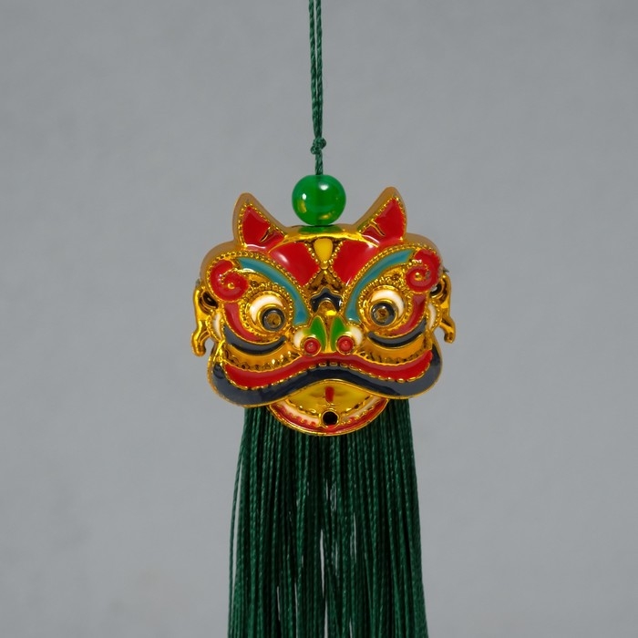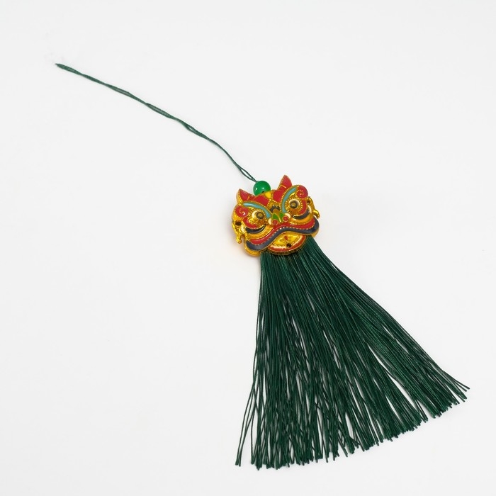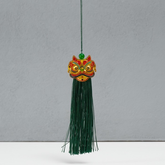 Подвеска текстиль, пластик "Китайский лев" зелёная 2х4х14 см