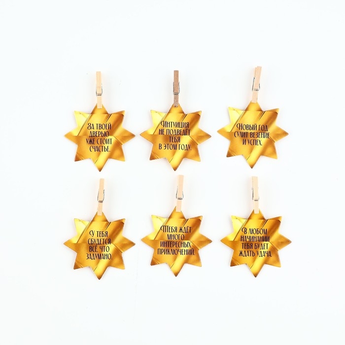 Новогодние украшения для бокалов на Новый год с предсказаниями, звёздочки, 5 х 5 см, 6 шт.