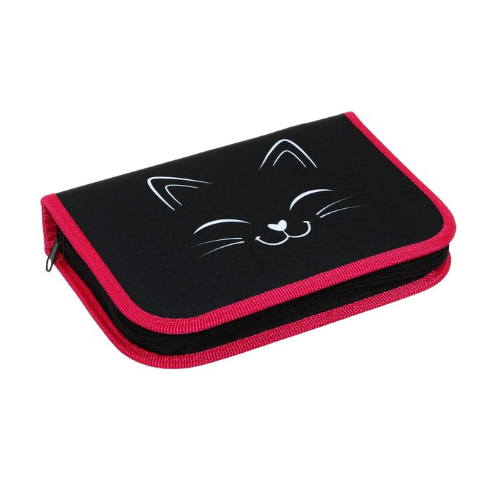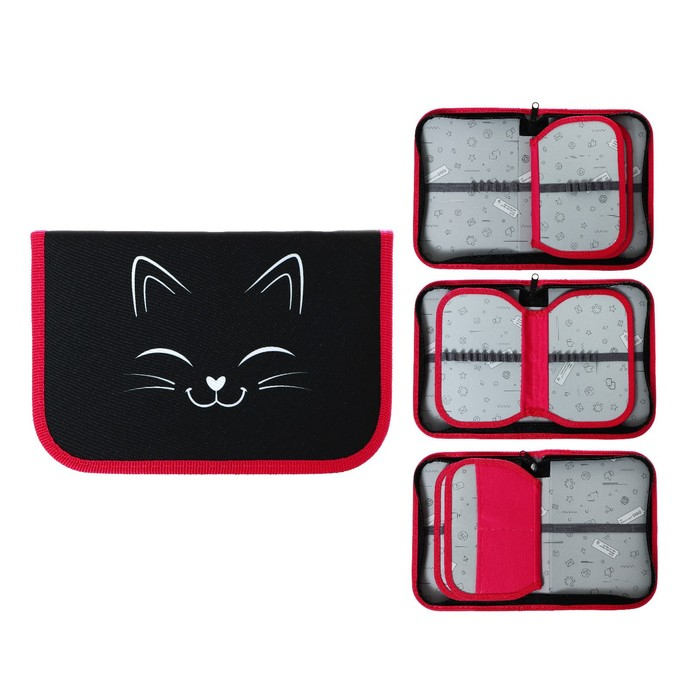 Пенал 3 секции, вкладка внутри, 140 х 210 х 40 мм, тканевый, Calligrata TOP Block "Котик"