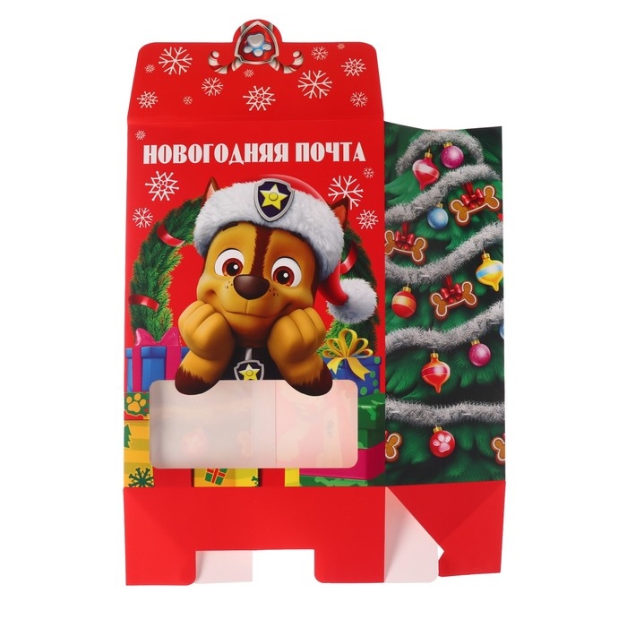 Коробка подарочная складная "Новогодняя почта", 20х28х10 см, Щенячий патруль