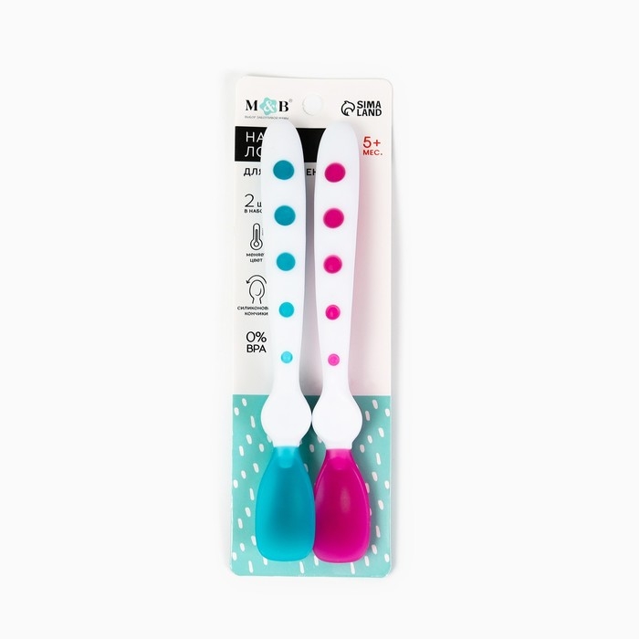 Набор термочувствительных ложек для кормления, 16,5см.. 2 шт., цвет розовый/бирюзовый