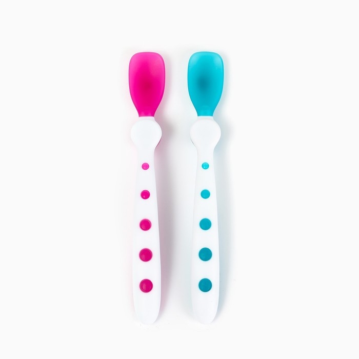 Термочувствительные свойства ложек помогут определить оптимальную температуру пищи. При соприкосновении с горячей едой кончик меняет цвет. Такая функция предупредит родителей, что детскуюеду нужно остудить.