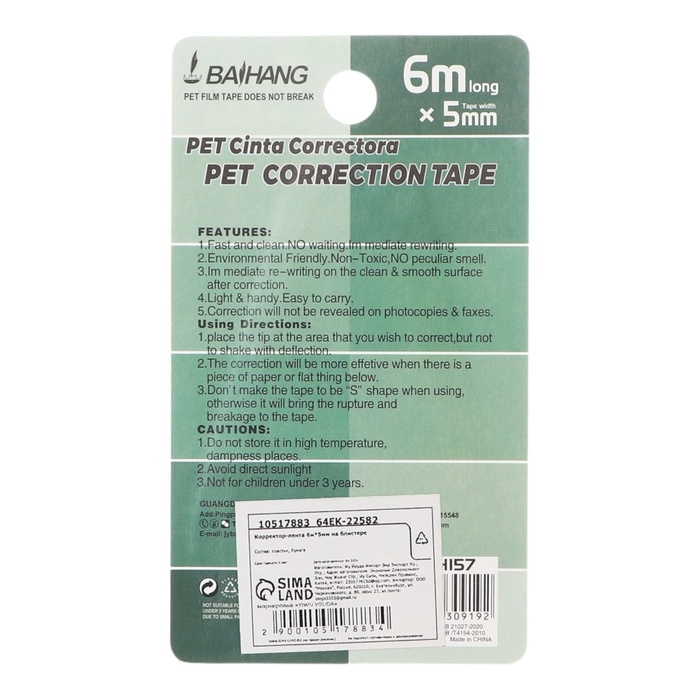 Корректор-лента на блистере.Идеален для исправления ошибок в тексте. Упаковка с блистером делает его удобным для продажи и использования. Данная лента обеспечивает аккуратное и быстрое исправление ошибок на бумаге, не оставляя следов и не пачкая поверхность.