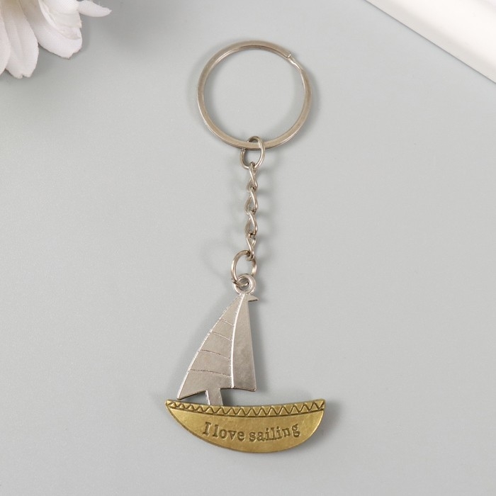Брелок металл "Парусная лодка" парус двигается 4х3,7 см