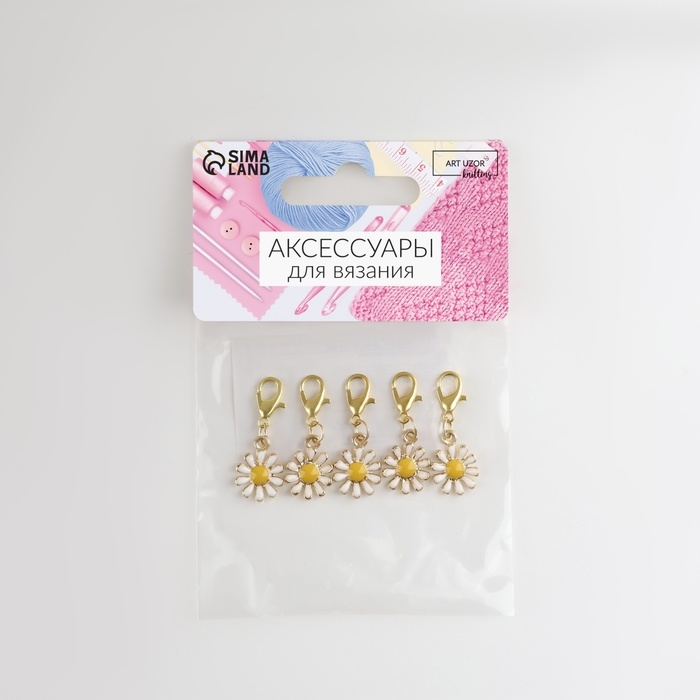 Маркеры для петель «Ромашка», d = 12 мм, 5 шт, цвет белый / золотой / жёлтый