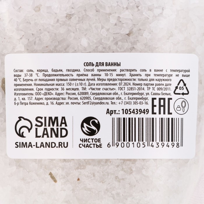 Соль для ванны с добавками, 150 гр, аромат корицы, Новый Год