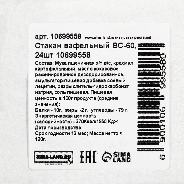 ВС-60 имеет компактные размеры и удобная форма делают его идеальным выбором для использования в домашних условиях, на природе или в поездках. Стакан вафельный ВС-60 – это не только удобный и практичный продукт, но и отличное дополнение к столу.