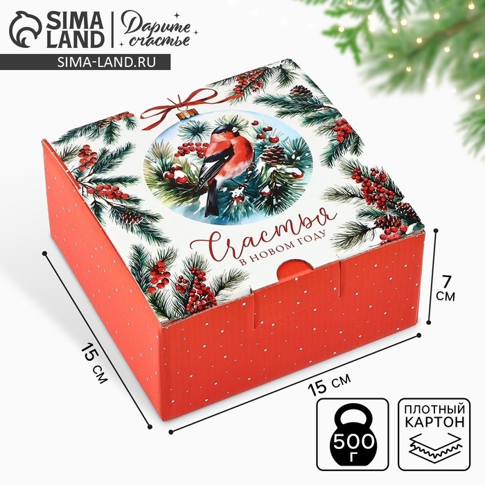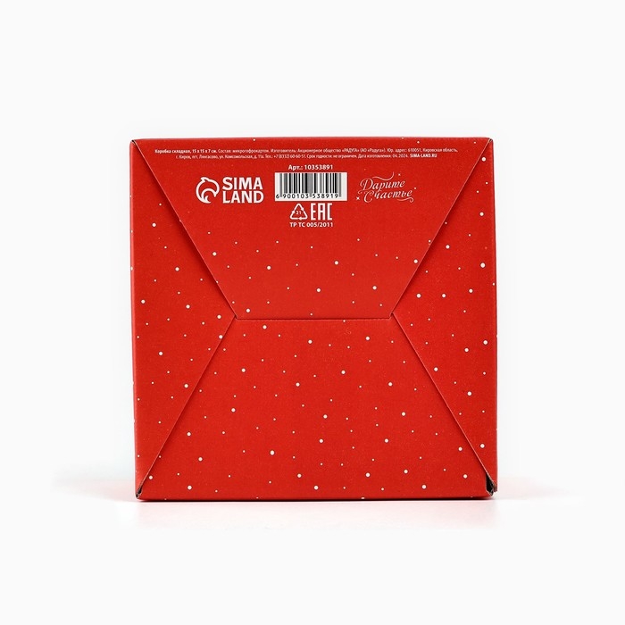 Коробка подарочная новогодняя складная «Снегири», 15 х 15 х 7 см, Новый год
