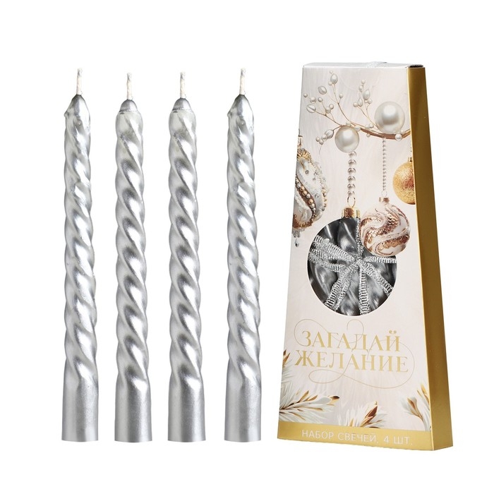 Свечи витые новогодняе «Новый год: Чудесных праздников», 4 шт, 6,8 х 1