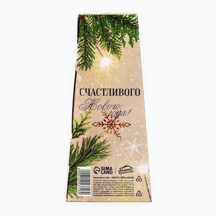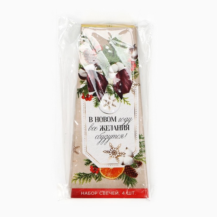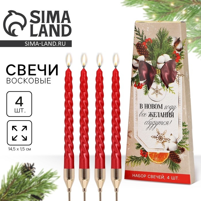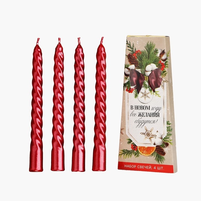 Свечи витые новогодняе «Новый год: Счастливого нового года», 4 шт, 6,8 х 1