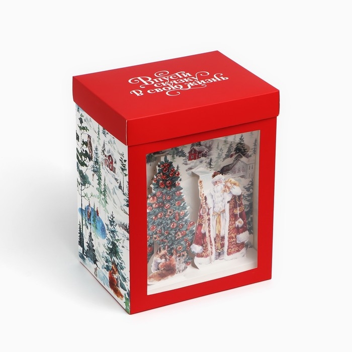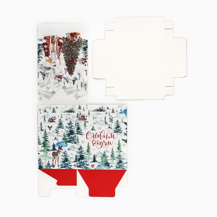 Подарочная коробка новогодняя складная с 3D эффектом «Новогодняя акварель», 18 х 23 х 14см, Новый год