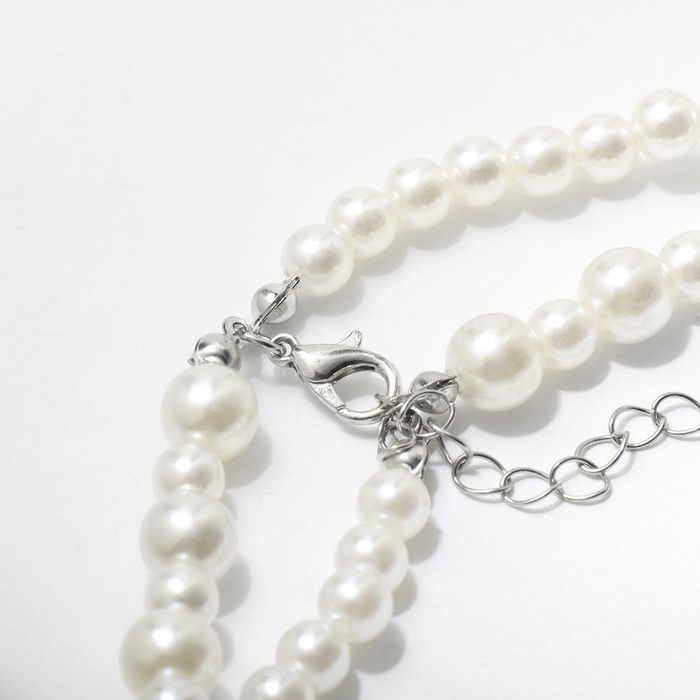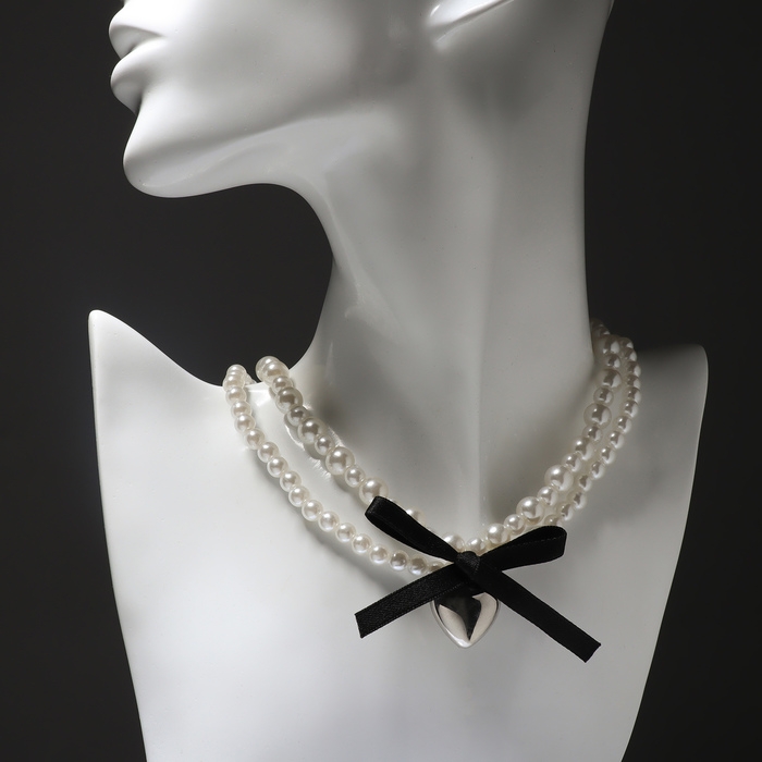 Колье с жемчугом «Сердце», цвет серебро, 30 см