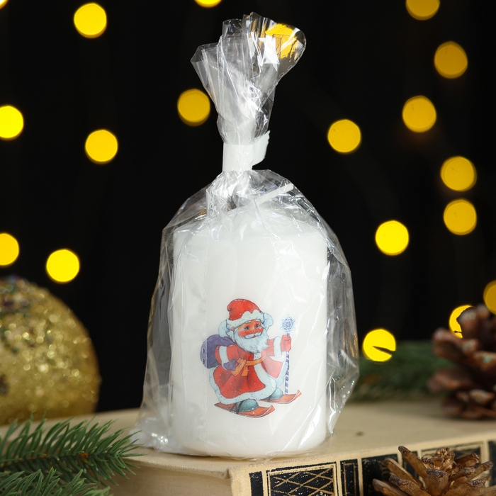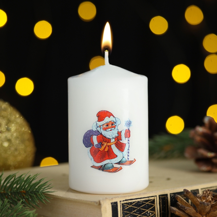 Новый год Свеча столбик с рисунком "Новогодние мотивы" 50*80 мм, Дед Мороз