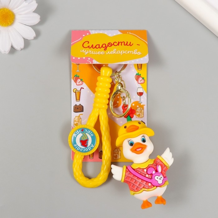 Брелок резина с карабином, ремешком "Модная уточка" 3,8х5х8 см