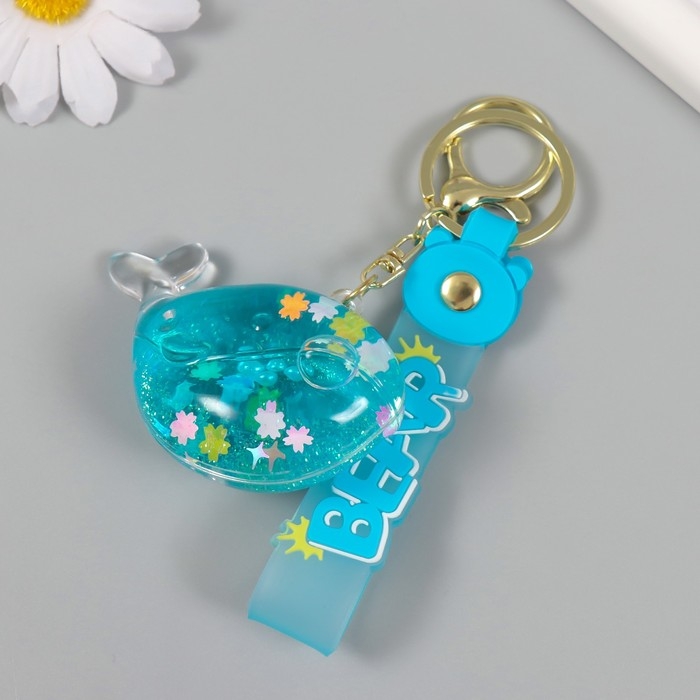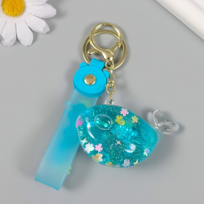 Брелок пластик с карабином, ремешком "Кит" водный с блёстками 4х7х2,5 см