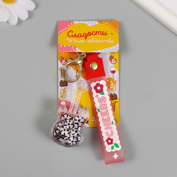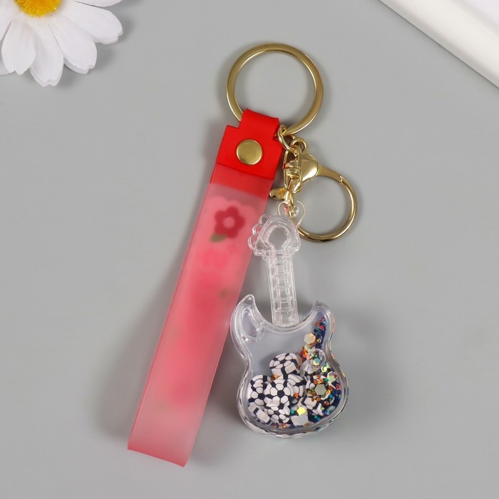 Брелок пластик с карабином, ремешком "Гитара" водный с декором 7х3,5х2 см