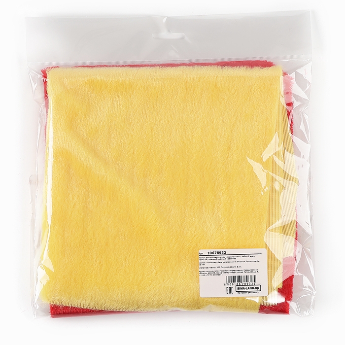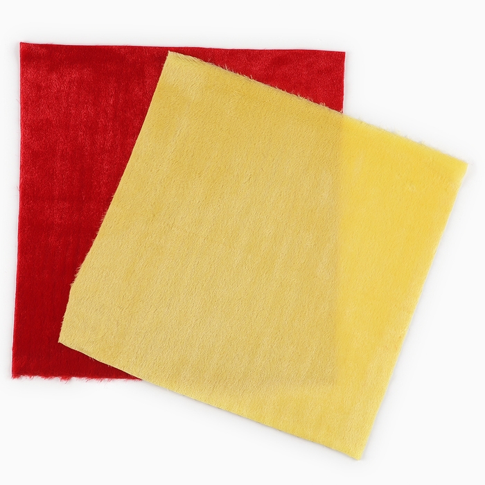 Лоскуты искусственного меха для рукоделия — это отличный выбор для вашего творчества. Набор включает два лоскута размером 40×40 см в красном и жёлтом цветах. Изготовленные из полиэстера, они идеально подходят для создания игрушек, аксессуаров и различных поделок.