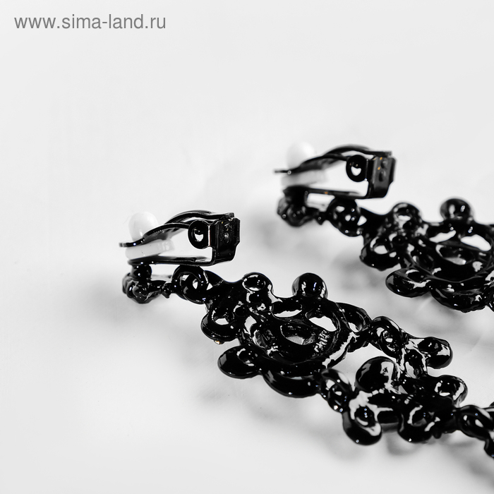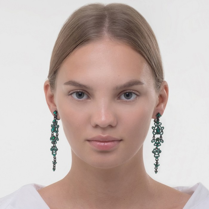 Клипсы «Ажур» капли с завитками, цвет изумрудный в чёрном металле