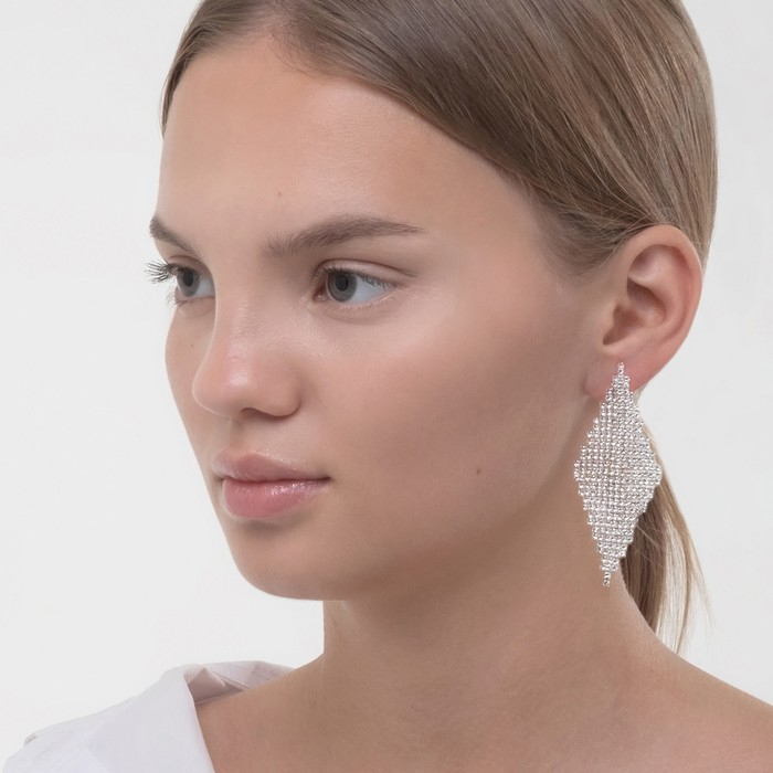 Клипсы «Лёд» классика 2 ряда, цвет белый в серебре