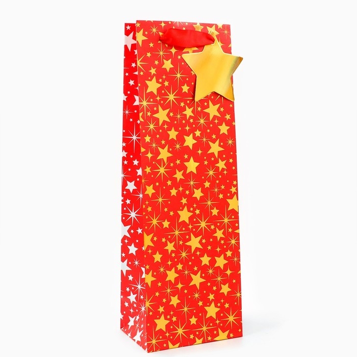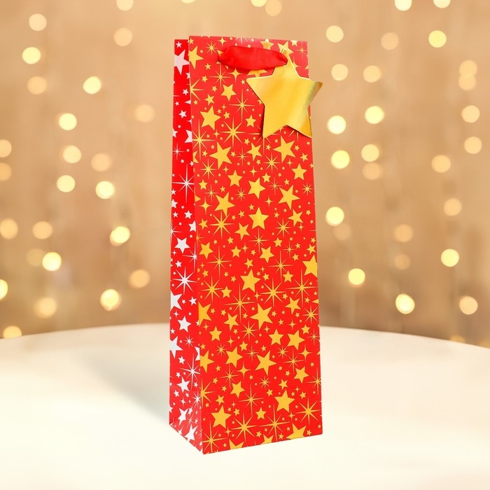 Новый год. Пакет подарочный новогодний под бутылку, упаковка "Звездочки", 12 х 36 х 8,5 см.