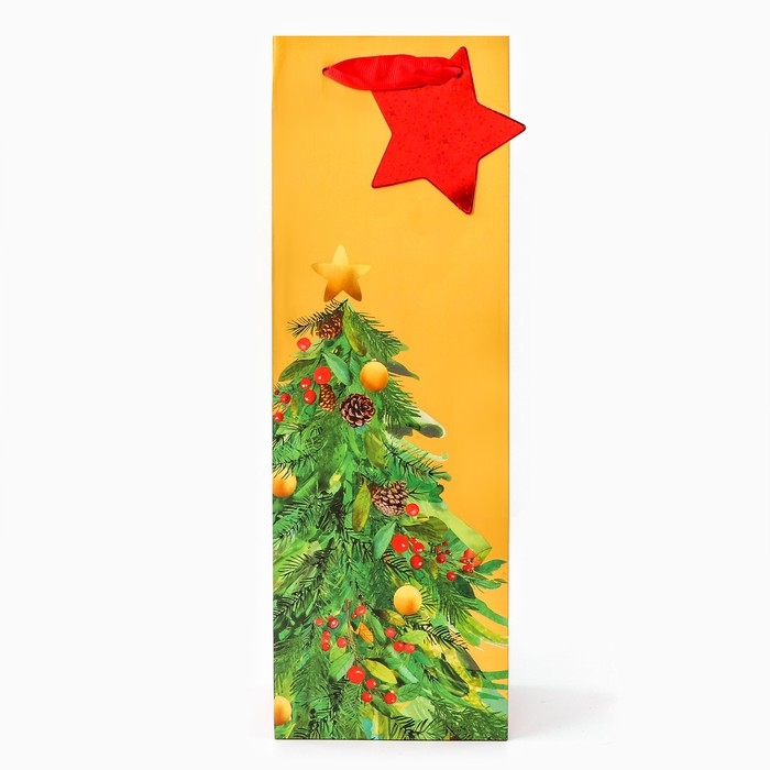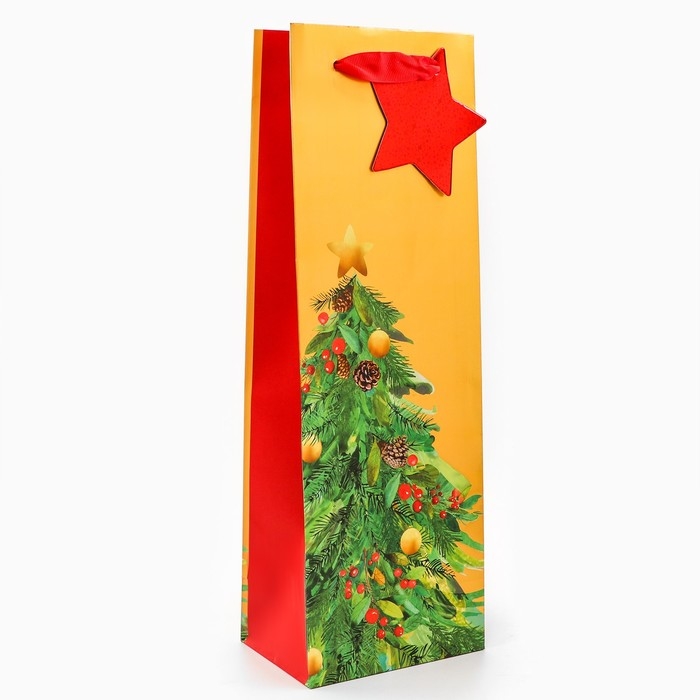 Новый год. Пакет подарочный новогодний под бутылку, упаковка "Дивная ёлка", 12 х 36 х 8,5 см.