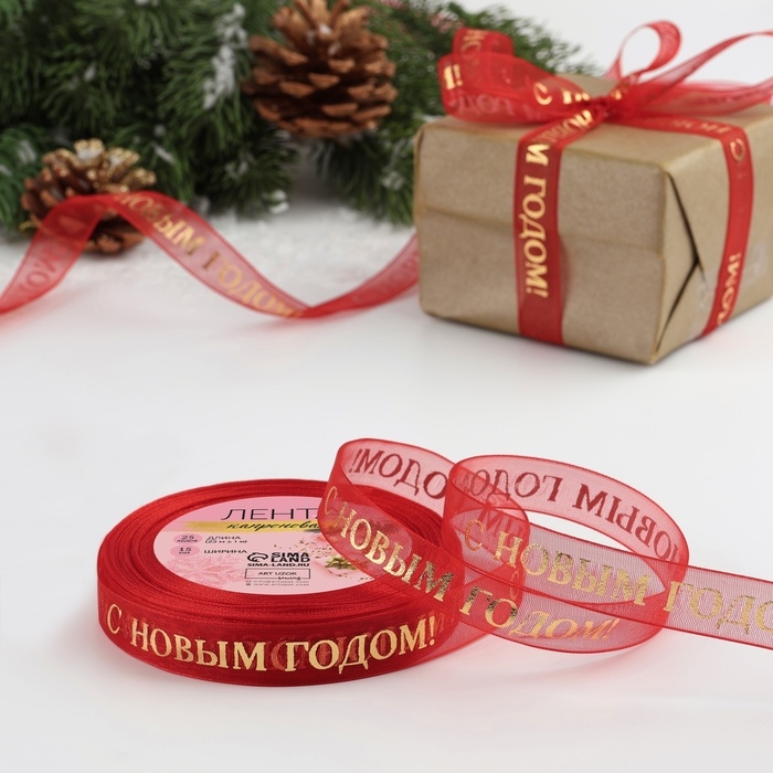 Новогодняя лента является универсальным помощником при изготовлении рукоделий, украшении интерьера, упаковке подарков и другого.