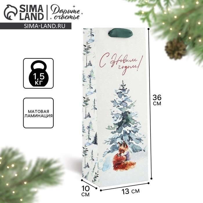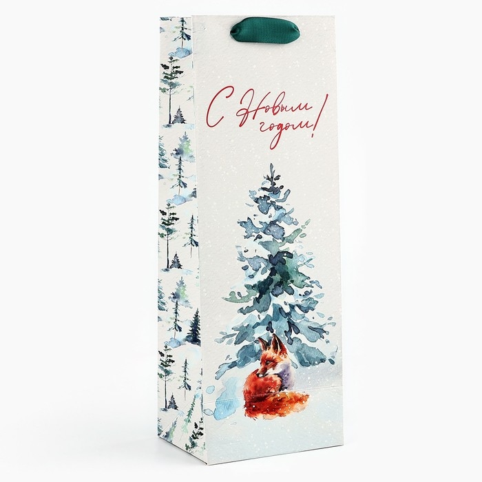 Пакет под бутылку «С Новым годом», лиса, 13 х 36 х 10 см , Новый год