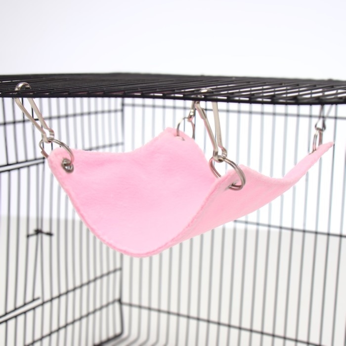 Компактные размеры 23x23 см и продуманная конструкция с креплением на карабинах обеспечивают простоту установки и надежность фиксации. Яркий розовый цвет не только украсит клетку, но и создаст атмосферу уюта и комфорта для вашего маленького друга.