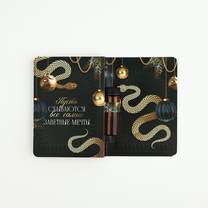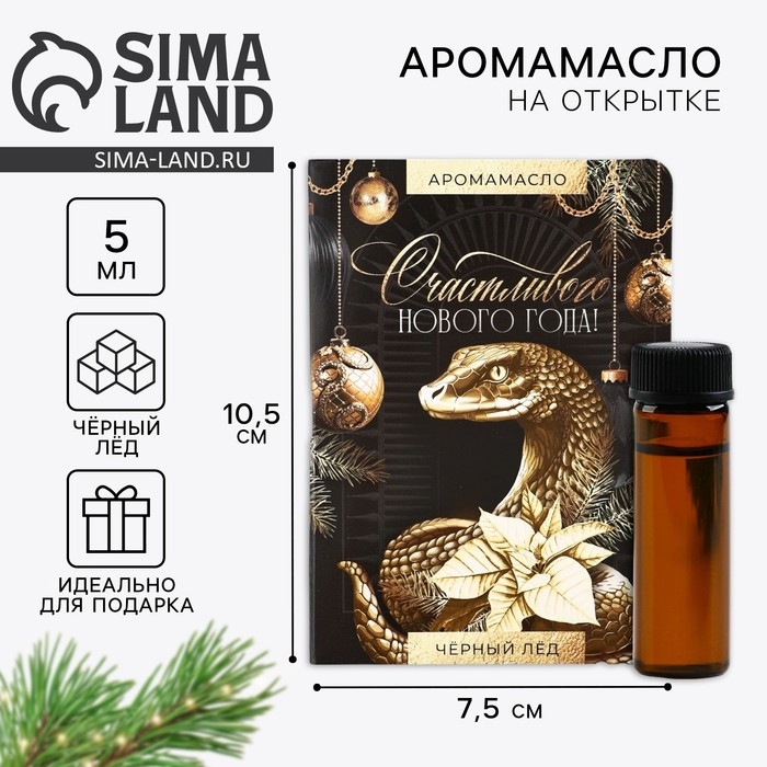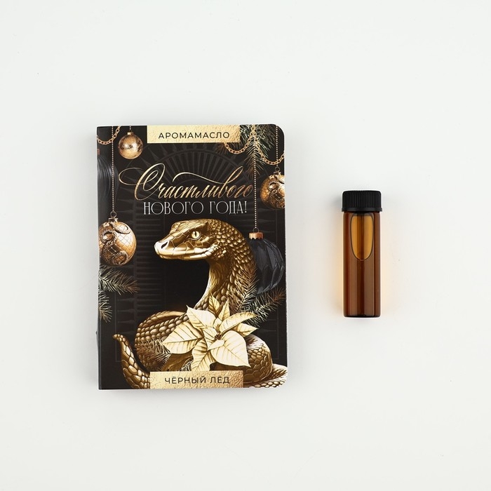 Аромамасло новогоднее на открытке «Счастливого нового года», аромат черный лед, 5 мл