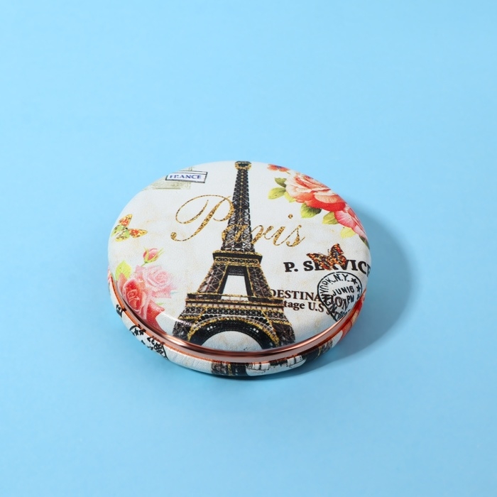 Зеркало складное «Париж», d = 7,5 см, с увеличением, искусственная кожа, цвет бежевый