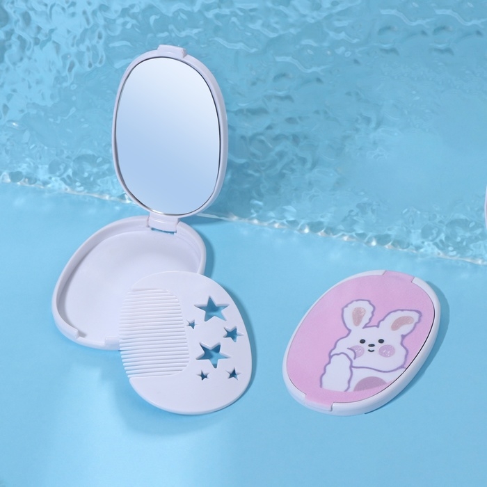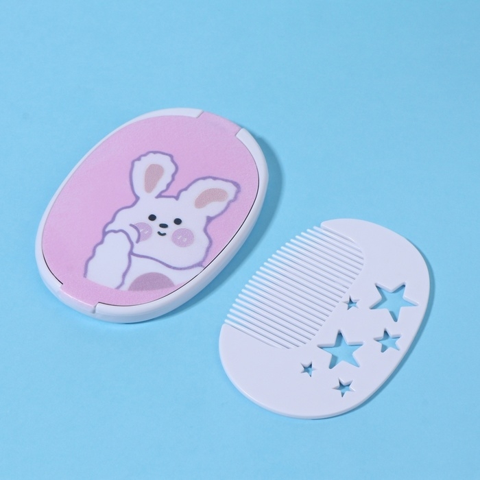 Зеркало складное «Зайка», с расчёской, 6,5 × 9,5 см