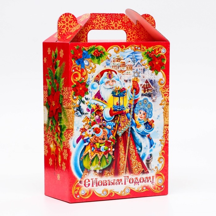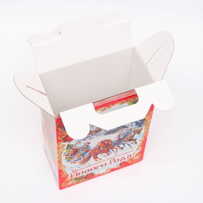 Коробка выполнена из качественных материалов, которые обеспечивают сохранность содержимого. Она имеет яркий и красочный дизайн, который отражает атмосферу Нового года.