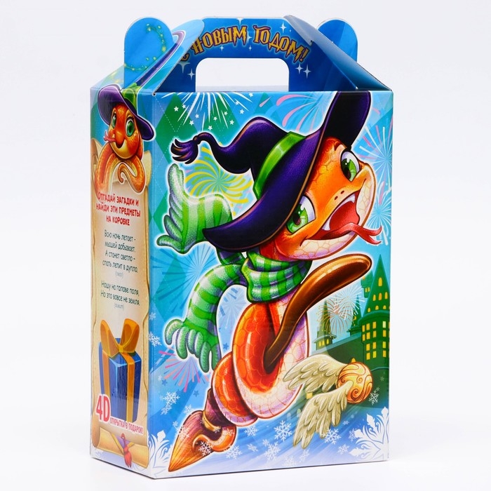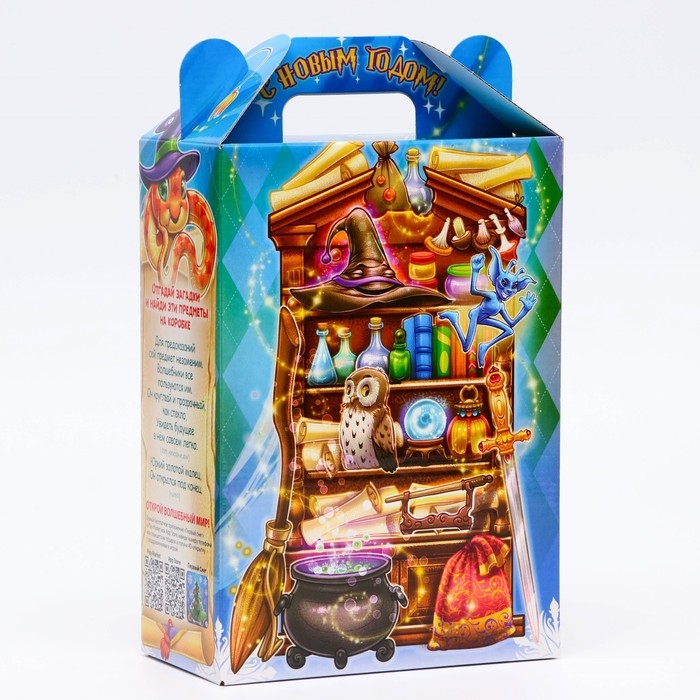 Коробка выполнена из качественных материалов, которые обеспечивают сохранность содержимого. Она имеет яркий и красочный дизайн, который отражает атмосферу Нового года.